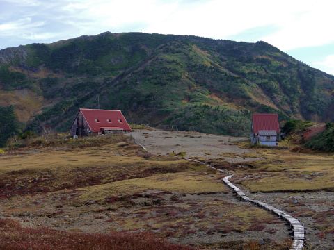 - 朝日岳と朝日小屋 「小屋閉め」の日、バンザイの丘から見る 10.10.13