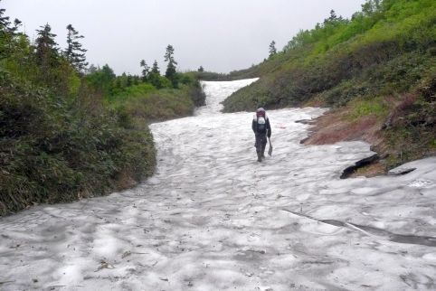 水平道の途中に、V字になった沢状の場所が2箇所あるのですが、雪が薄くなってきた場合、うっかり踏み抜くとかなりの高さから落ちてしまうことがあります。