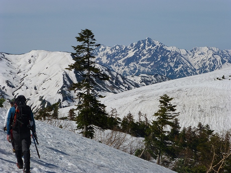 - 前朝日の巻道で、剱岳を望む 「偵察登山」にて 2013.6.9